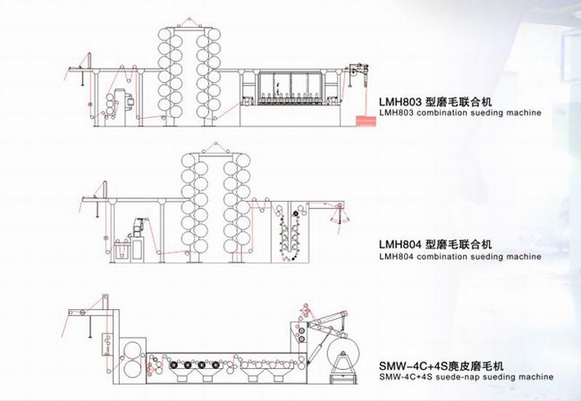 組合(聯合)磨毛機流程圖
